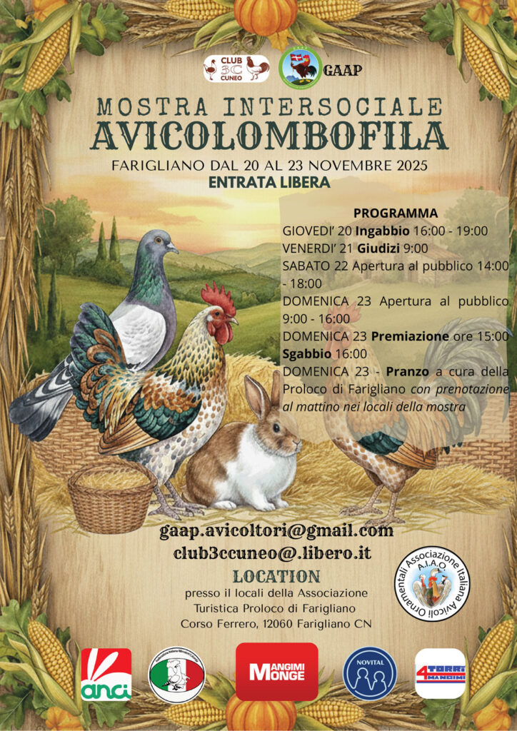 20-23 Novembre – MOSTRA INTERSOCIALE AVICOLOMBOFILA – Associazioni GAAP e Club 3C Cuneo